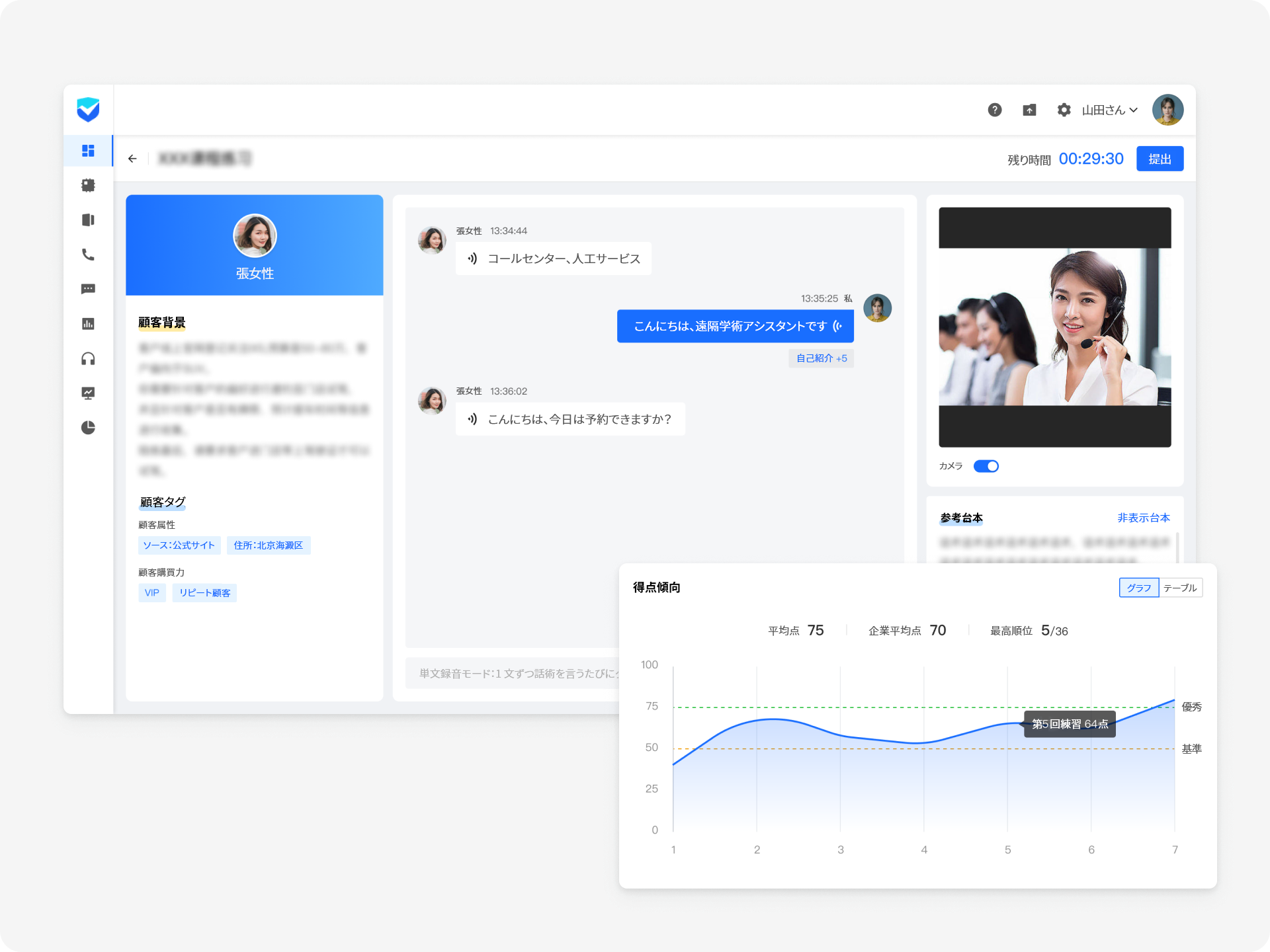 コールセンターアシスタントは、すべてのオペレーターをカスタマーサービスの専門家に育成することを目指しています。自然言語認識、意味理解、顧客プロファイリングなどの技術を活用し、